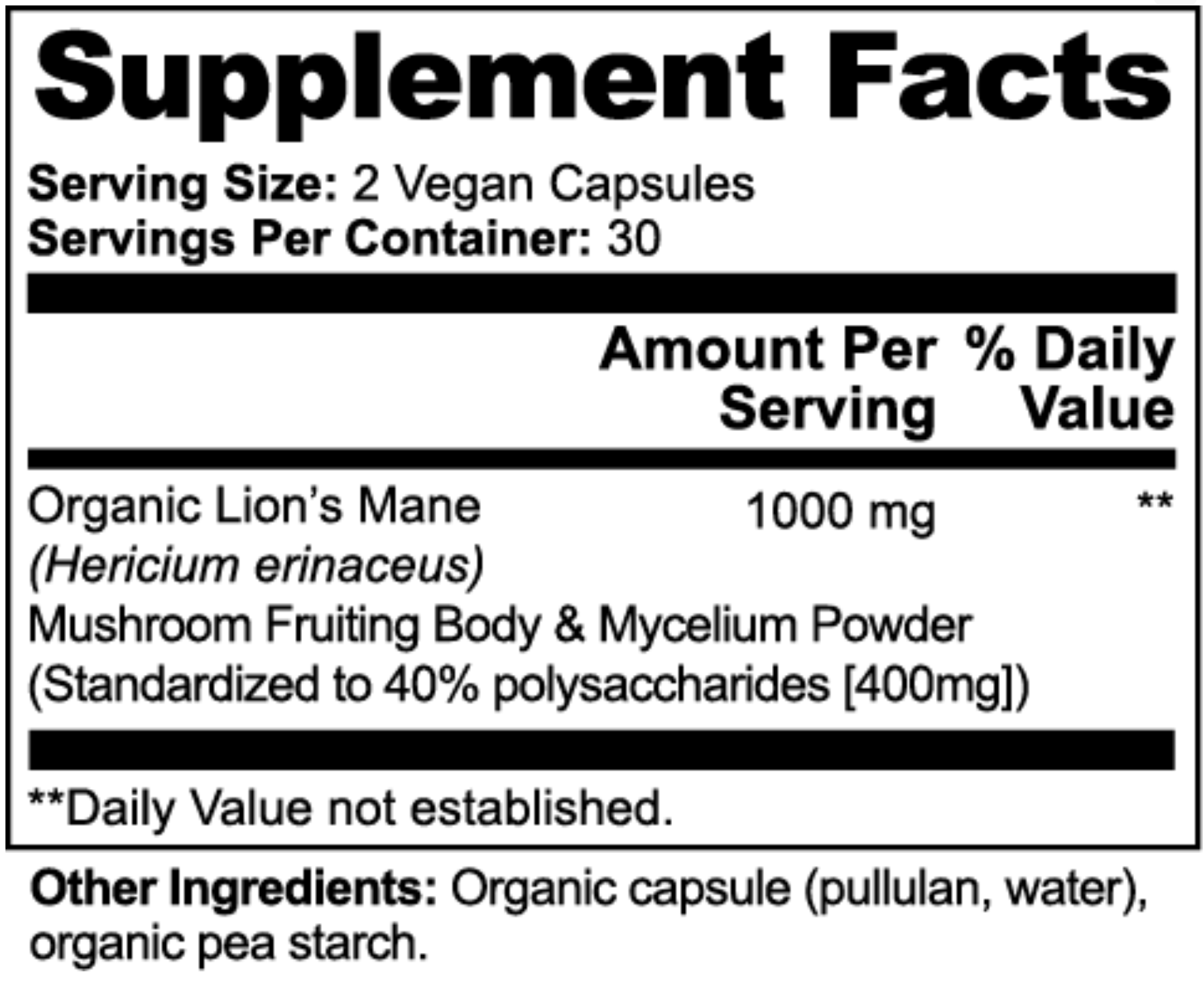 Studies suggest Lion’s Mane Mushroom Extract has been shown to benefit the following: