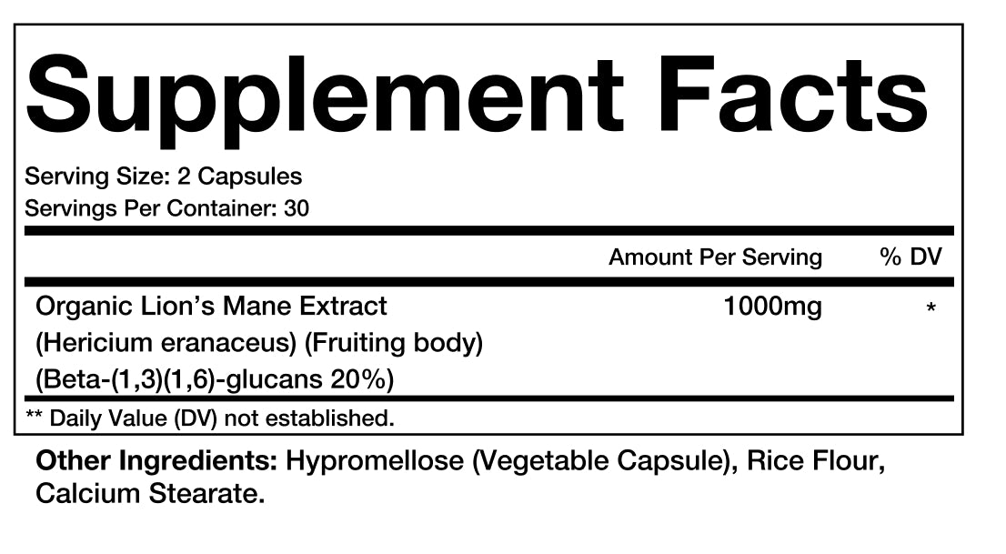 Studies suggest Lion’s Mane Mushroom Extract has been shown to benefit the following: